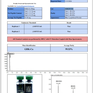 Each batch of GHK Cu is tested to meet strict purity and quality standards.